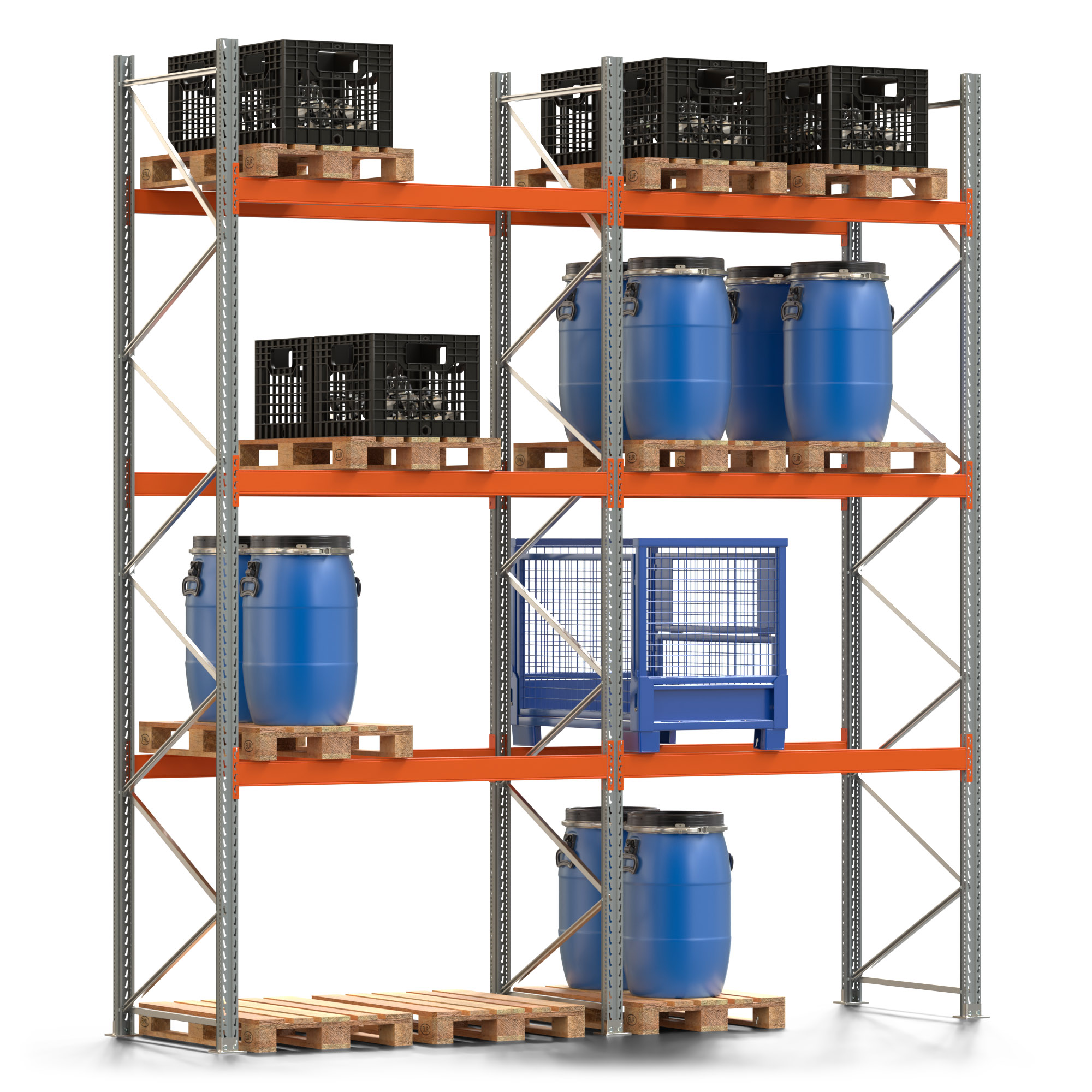 Palettenregal ARTUS - Breite 405,5 cm - Höhe 450 cm - Tiefe 110 cm - 3 Träger-Ebenen - Fachlast 2000 kg - 16 Palettenstellplätze