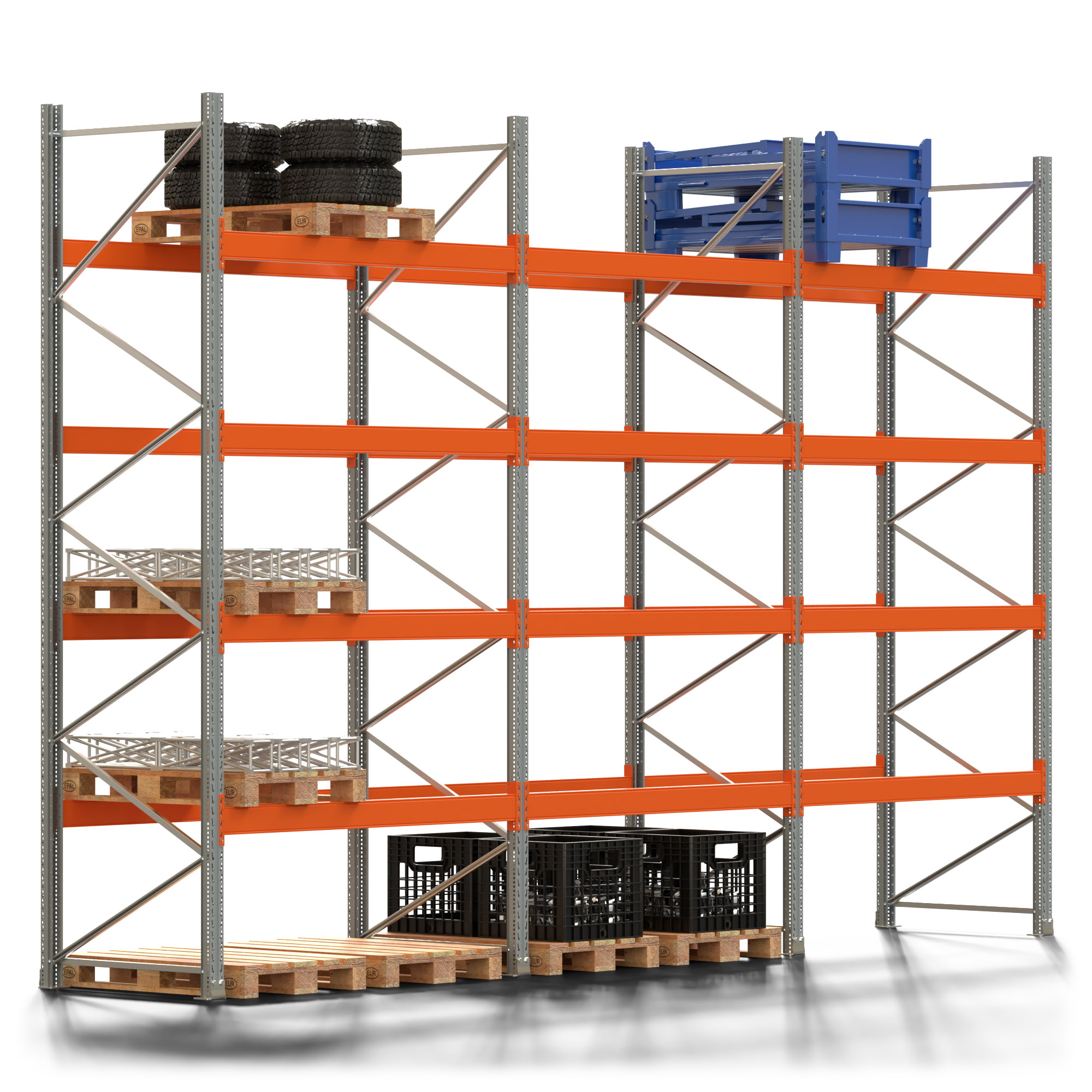Palettenregal ARTUS - Breite 604 cm - Höhe 400 cm - Tiefe 110 cm - 4 Träger-Ebenen - Fachlast 2600 kg - 30 Palettenstellplätze