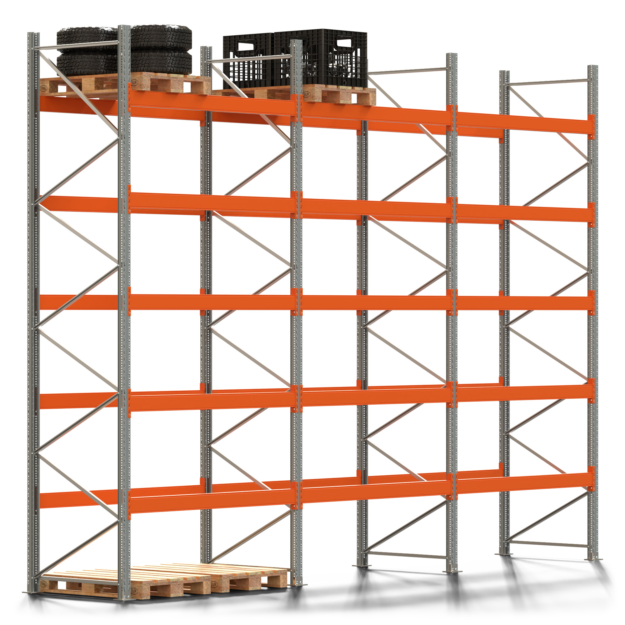 Palettenregal ARTUS - Breite 604 cm - Höhe 450 cm - Tiefe 110 cm - Fachlast 2000 kg - 18 Palettenstellplätze