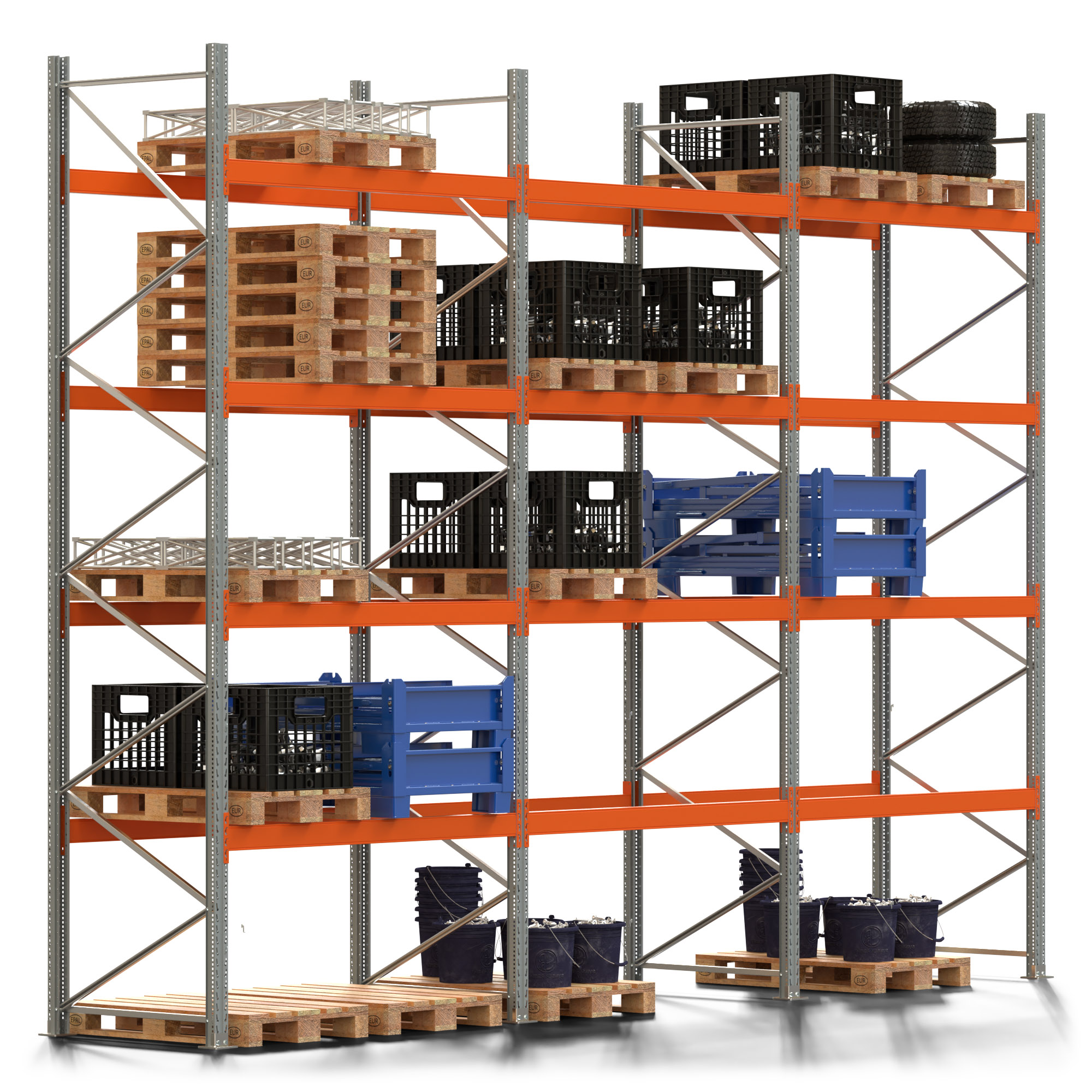 Palettenregal ARTUS - Breite 604 cm - Höhe 450 cm - Tiefe 110 cm - 4 Träger-Ebenen - Fachlast 2000 kg - 30 Palettenstellplätze
