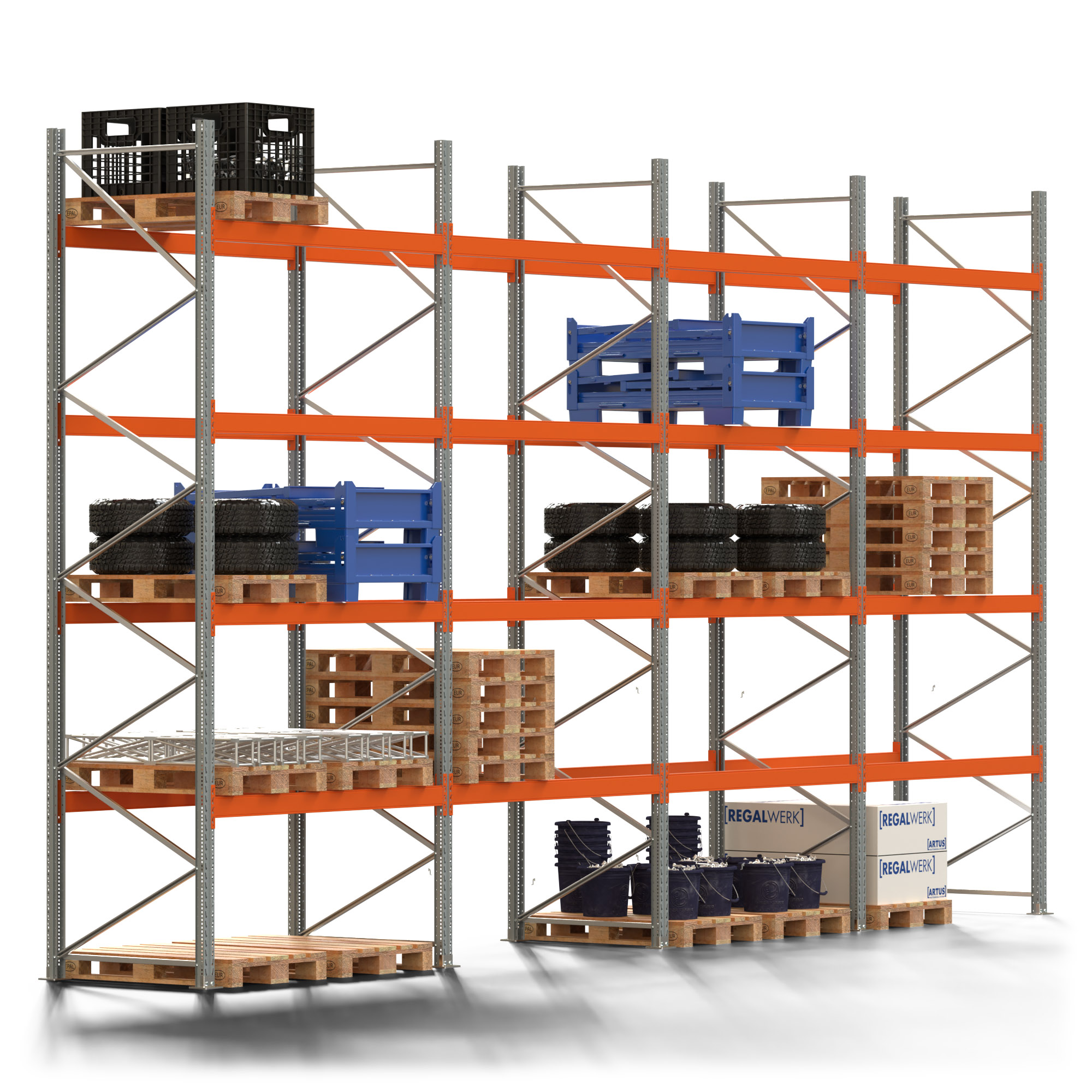 Palettenregal ARTUS - Breite 802,5 cm - Höhe 450 cm - Tiefe 110 cm - 4 Träger-Ebenen - Fachlast 2000 kg - 40 Palettenstellplätze
