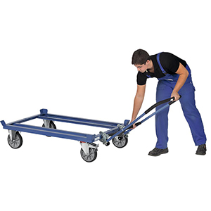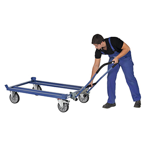 ∙ Stabiler Rohrschiebebügel zum bequemen Verfahren der Paletten-Fahrgestelle